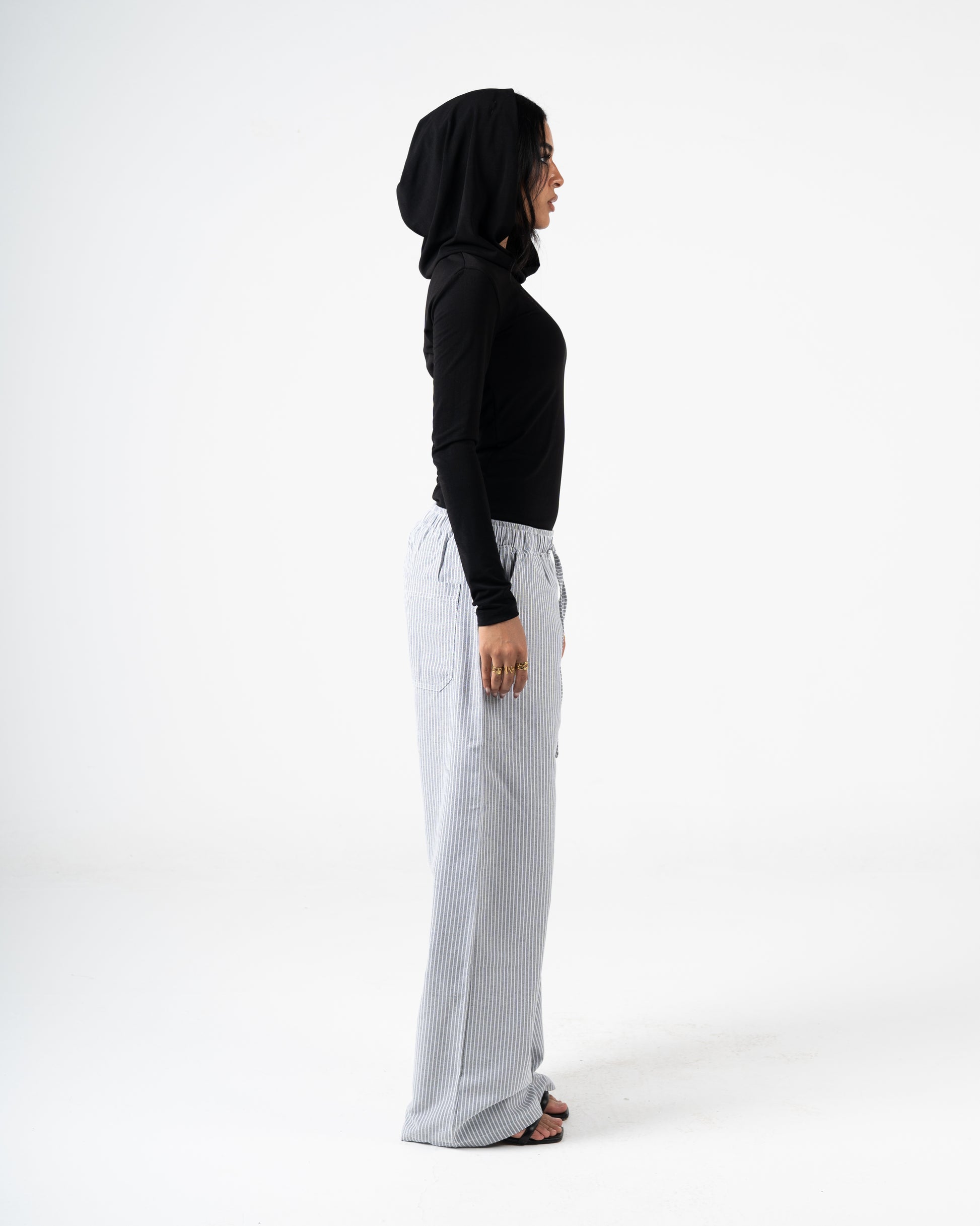 Breathe easy in these lightweight, relaxed-fit summer pants featuring a timeless blue-and-white vertical stripe pattern. Designed for comfort and style, they come with an elastic waistband and adjustable drawstring for the perfect fit—ideal for beach days, lounging, or casual outings.
