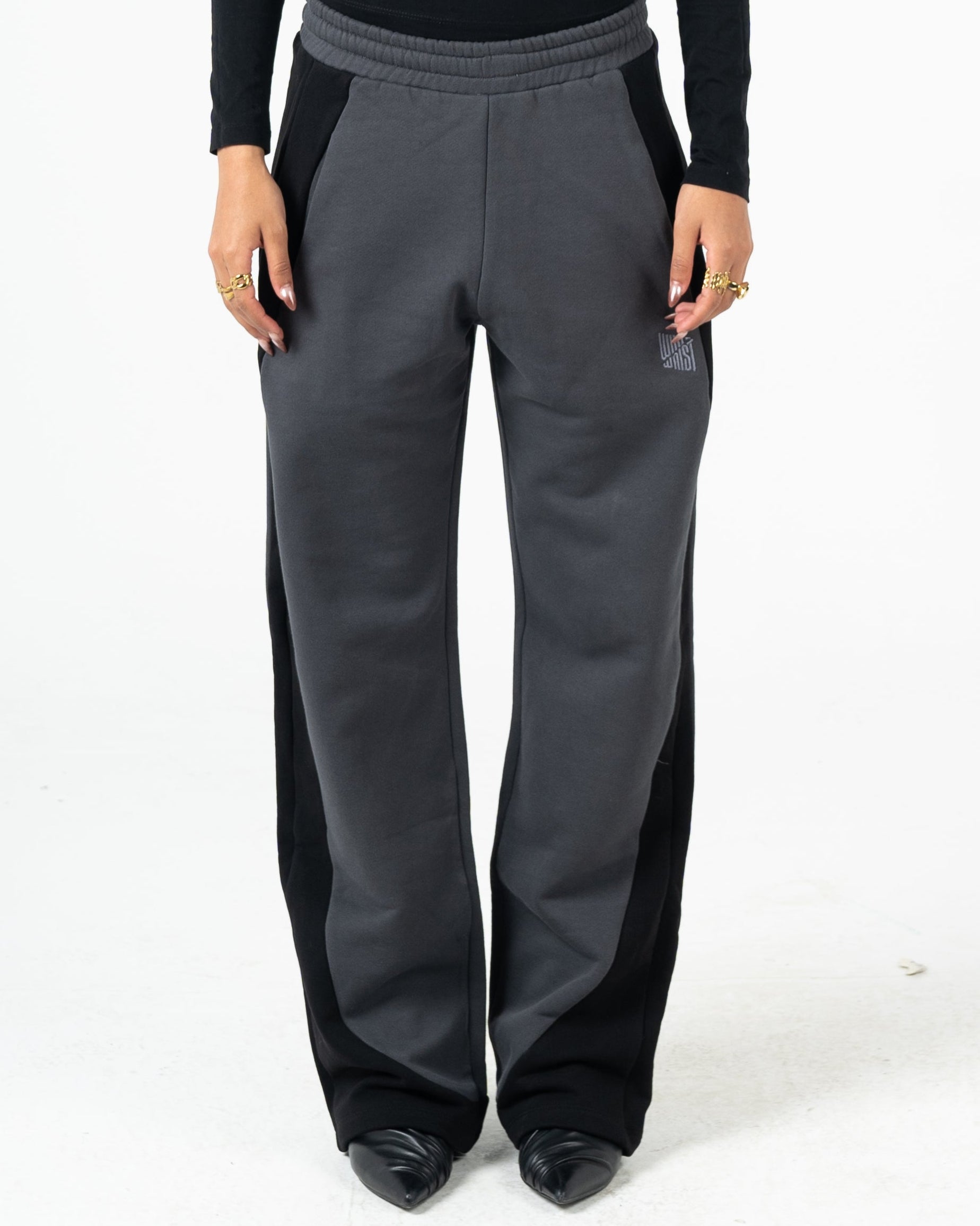 Design details: Mixed-color fabric, wide-leg cut, high-rise fit, elastic waistband