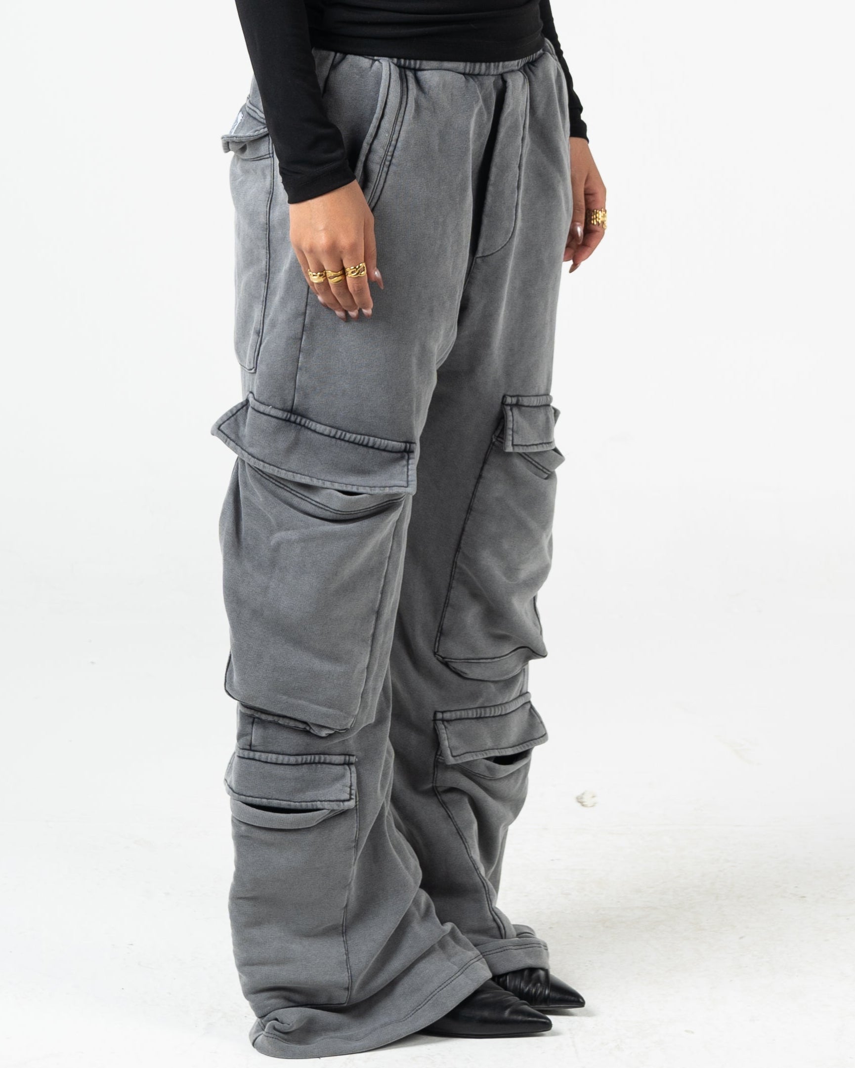 Featuring a washed finish for that lived-in look, they come with an elastic waistband for a secure fit, spacious side cargo pockets for added functionality, and straight-leg styling for a clean, versatile silhouette.
